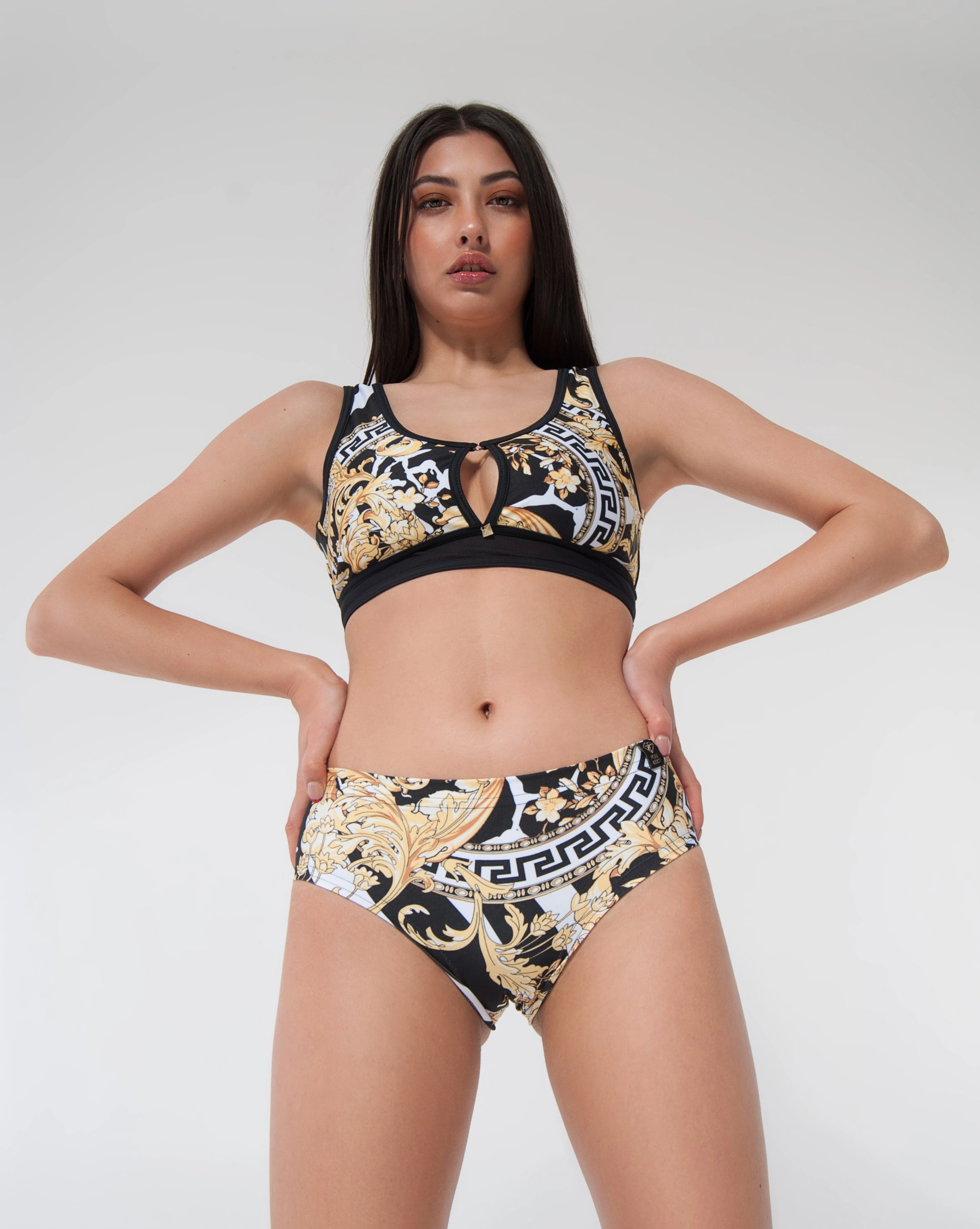 The low-waisted shorts offer great freedom of movement and are also suitable for beach styling.