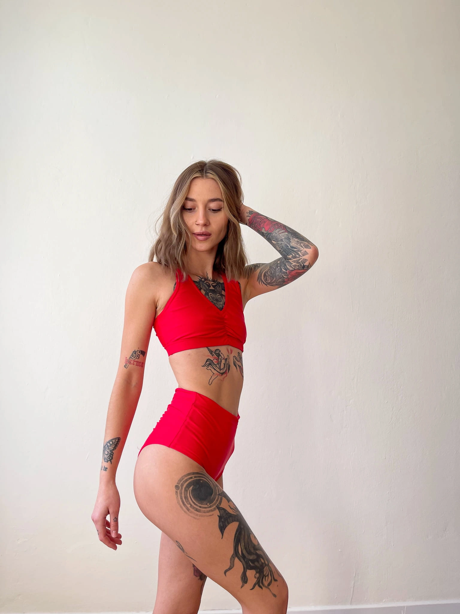 A practical red top for larger busts.