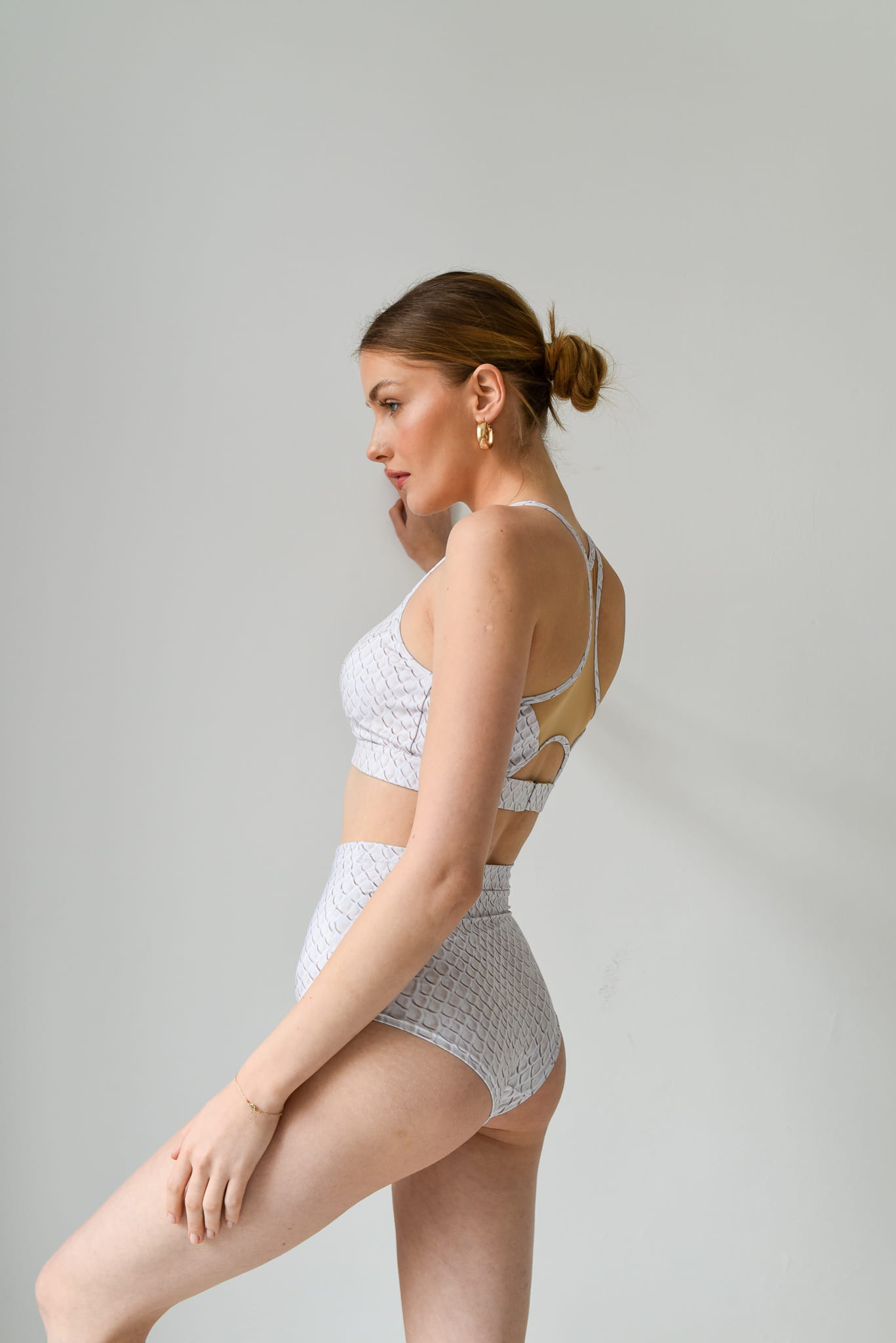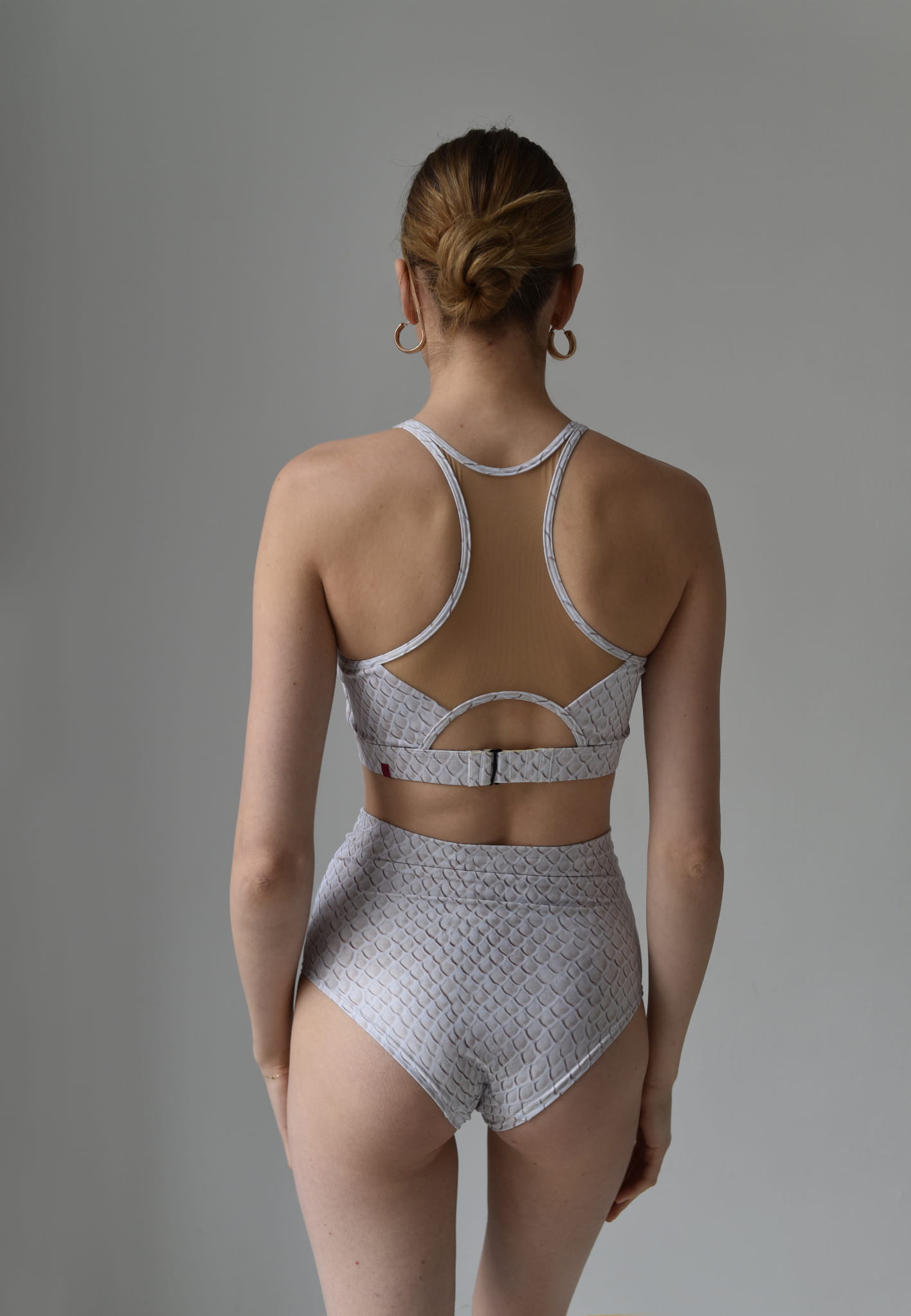 Ręcznie uszyty biustonosz sportowy z kolekcji The New One. Model przeznaczony do treningów pole dance, exotic dance, siłowych oraz innych sportów. Świetnie spisze się także do stylizacji plażowych.