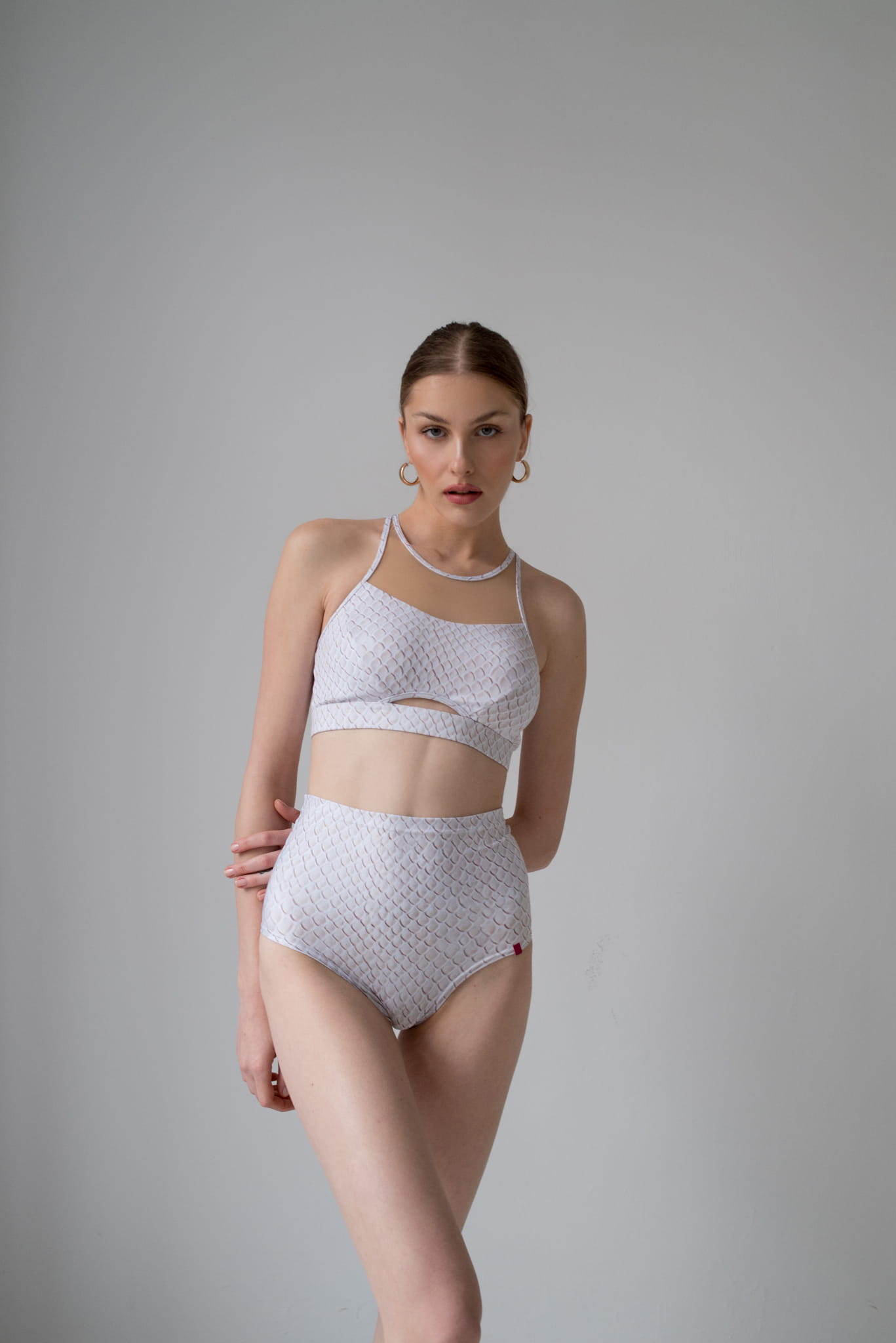 Ręcznie uszyty biustonosz sportowy z kolekcji The New One. Model przeznaczony do treningów pole dance, siłowych oraz innych sportów i na plażę.