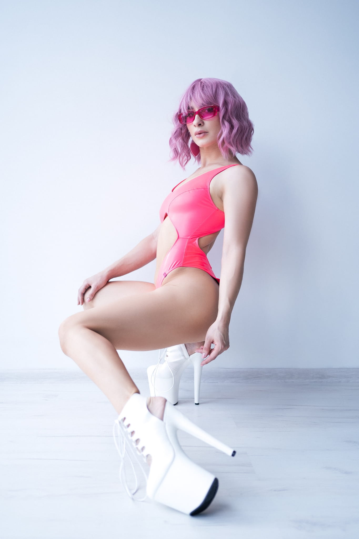 Body do pole dance z wycięciem na brzuchu Tender Flash Pink