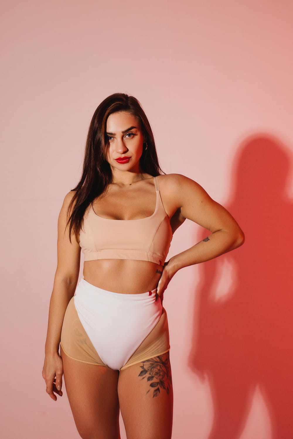 Spodenki z cielistej siateczki dla zwiększenia wygody podczas wymagających treningów.