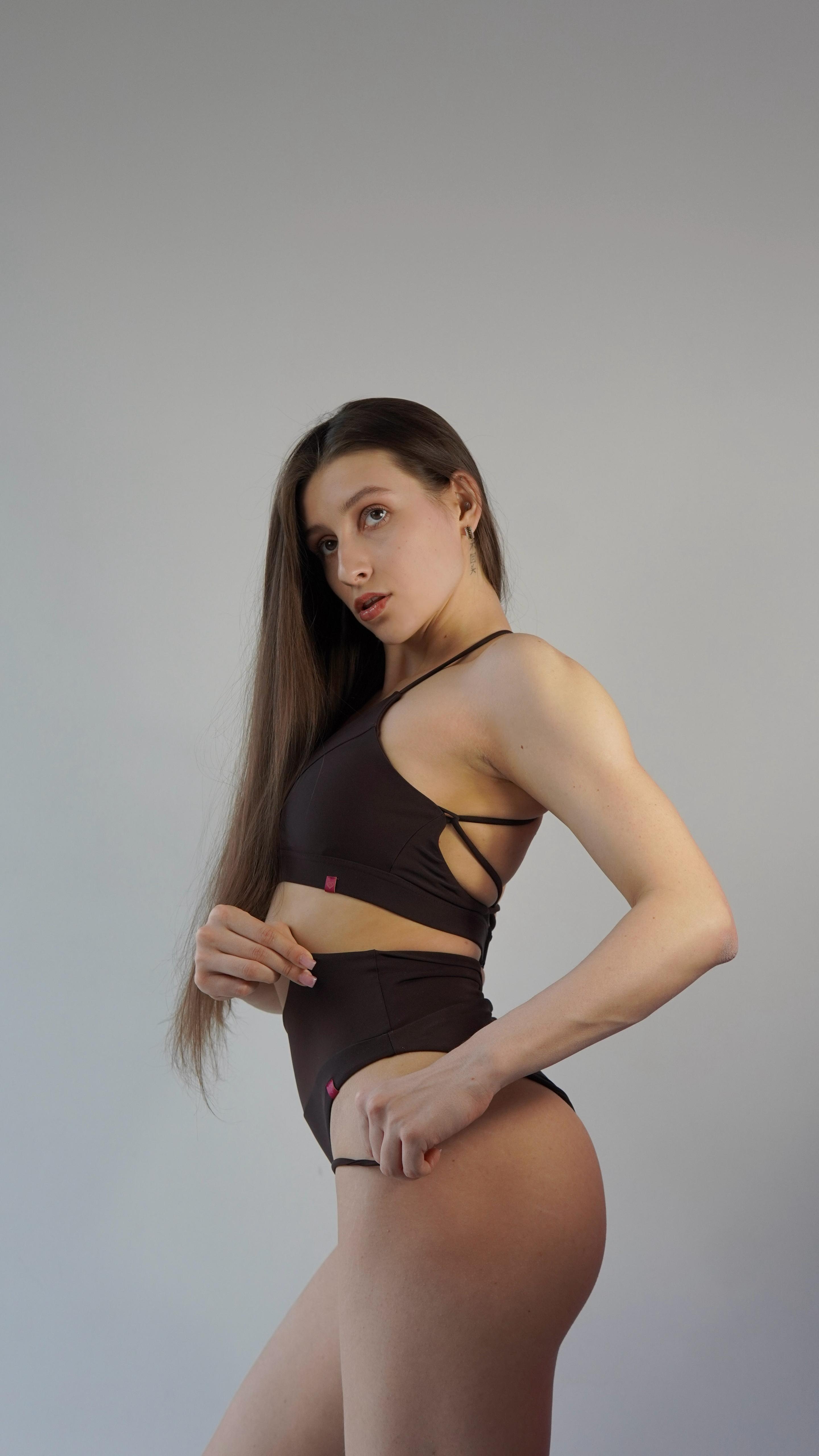 Zostały uszyte ręcznie z podwójnej warstwy sportowego materiału pochodzącego z regenerowanego nylonu ECONYL®. Szorty są tak skrojone, by pozostawały na swoim miejscu w trakcie tańca i zakrywały odpowiednie miejsca podczas najbardziej wymagających treningów pole dance i exotic pole. Paseczki po bokach dodają zmysłowego wyglądu i podkreślają kobiece kształty. Idealnie sprawdzą się na basenie lub plaży, ponieważ jest odporny na chlor oraz kremy i olejki do opalania. Posiada ochronę słoneczną UPF 50+. Tkanina nie prześwituje oraz nie traci fasonu nawet po wielu praniach.